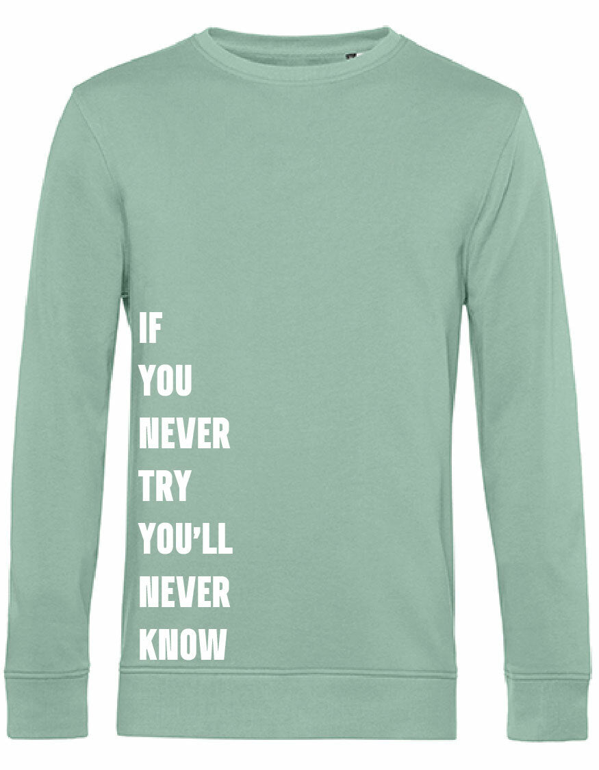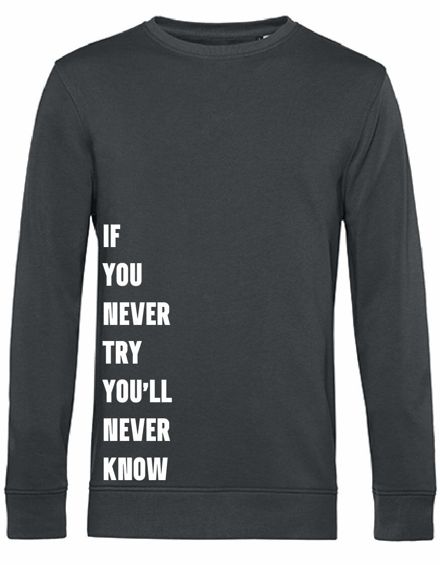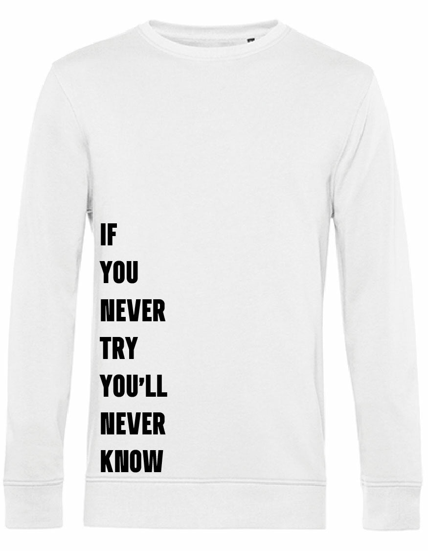Heerlijke sweater met opdruk; Never Try, Never Know
