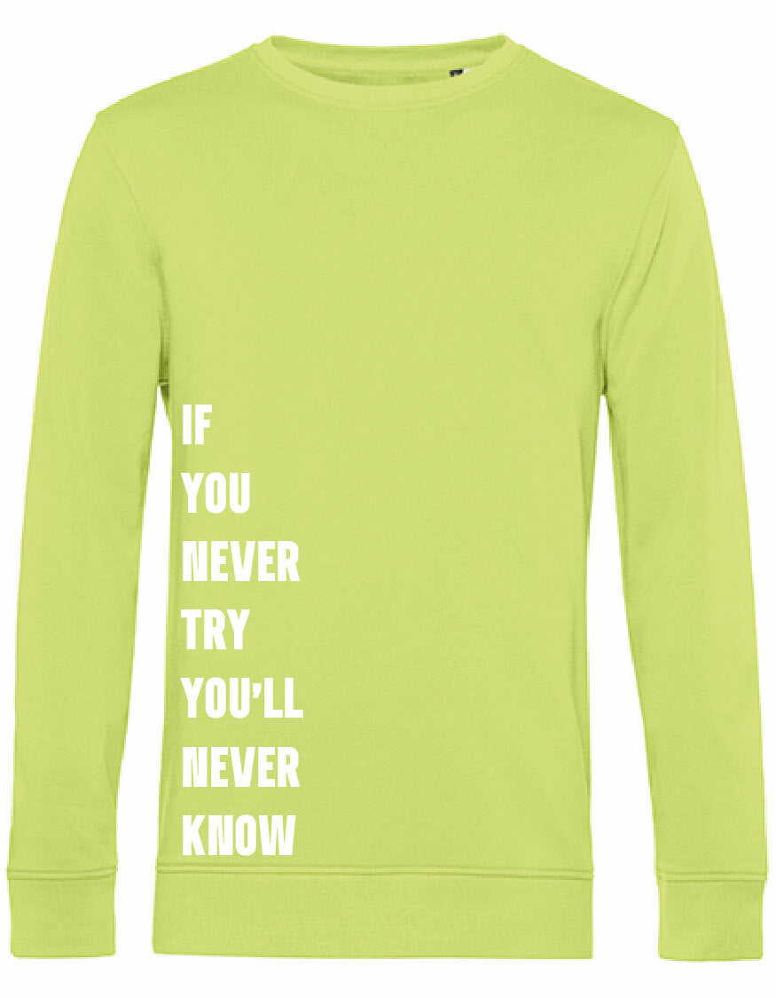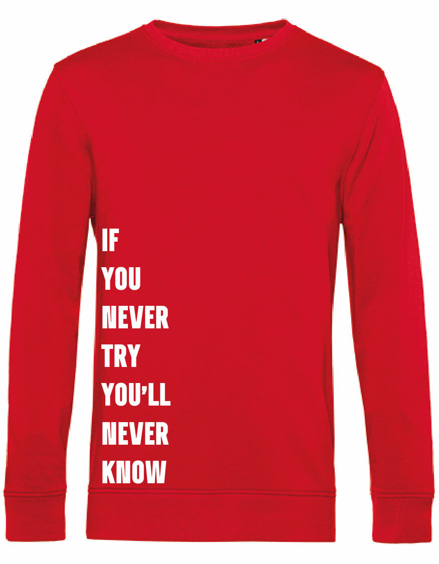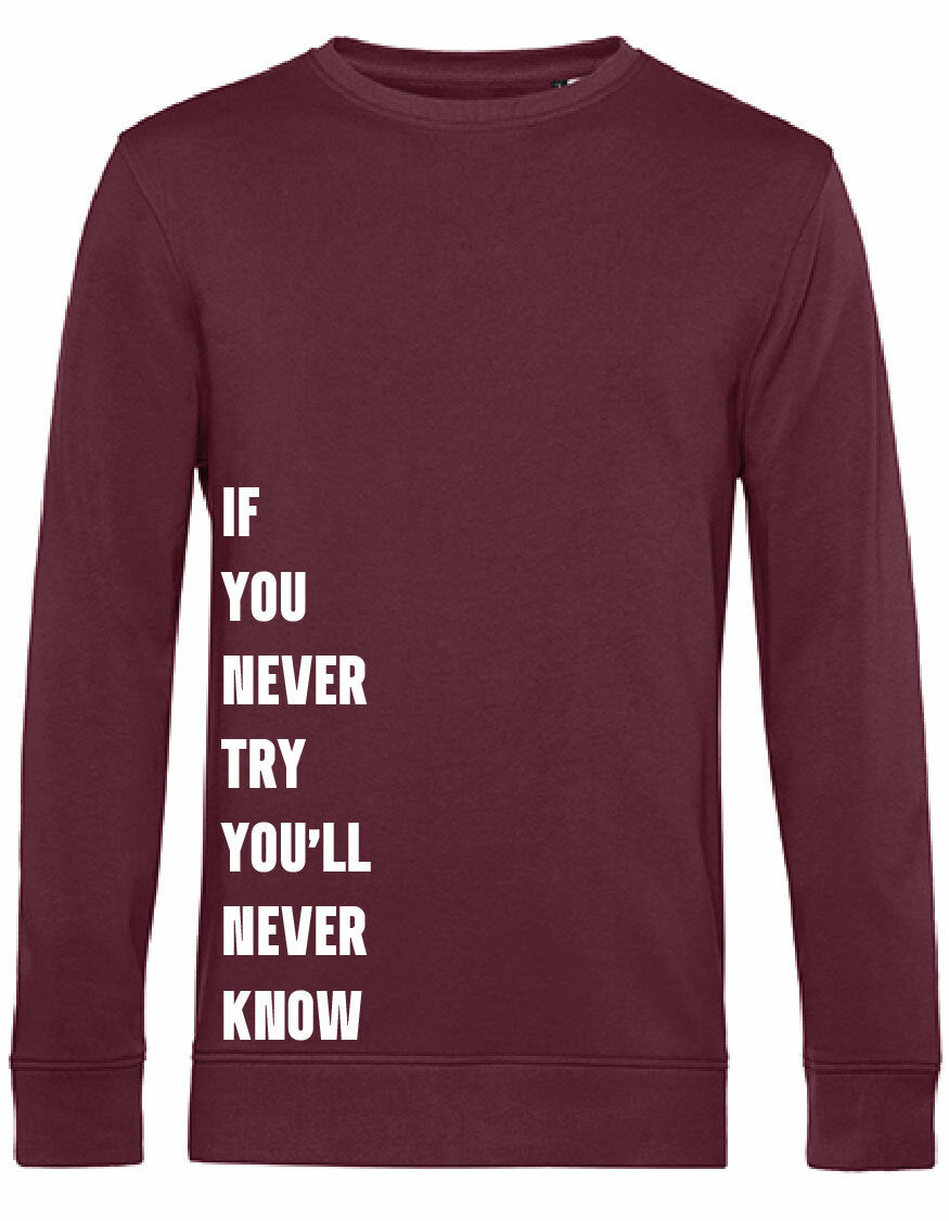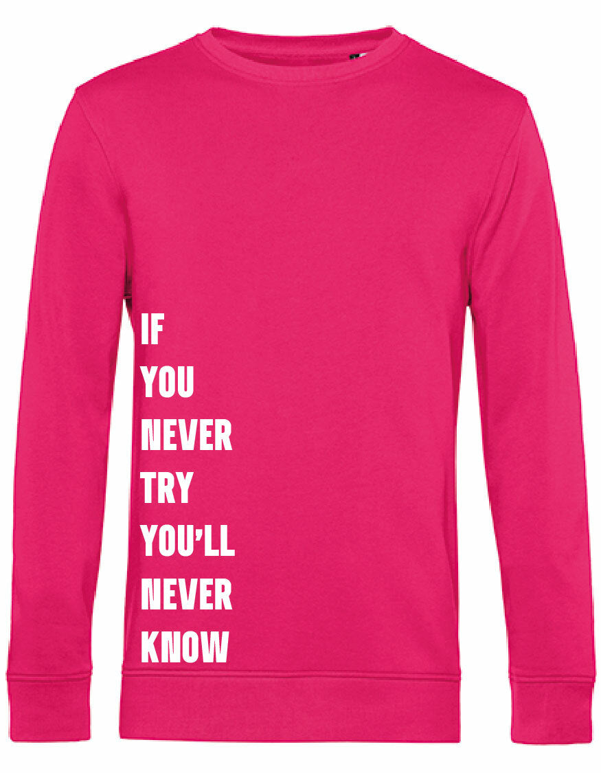 Heerlijke sweater met opdruk; Never Try, Never Know